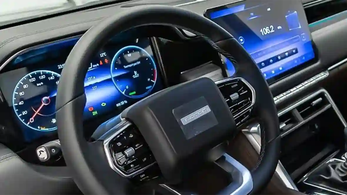 Под капотом TUNLAND V7 двухлитровый турбодизель мощностью почти 160 сил. Это, прямо скажем, немного, однако крутящий момент на уровне 410 ньютонов, чего для грузов и бездорожья должно хватить. Дизелю помогает мягкий гибридный довесок в виде стартера-генератора, дающий дополнительные 60-80 ньютонов тяги под нагрузкой, при старте, ускорении и подъёмах. Замечу, не только на бумаге! Здесь же, естественно, функция рекуперации, которая позволяет экономить на топливе. Расход получается около 8-10 литров, что учитывая заоблачные цены на дизель, ещё один плюс.