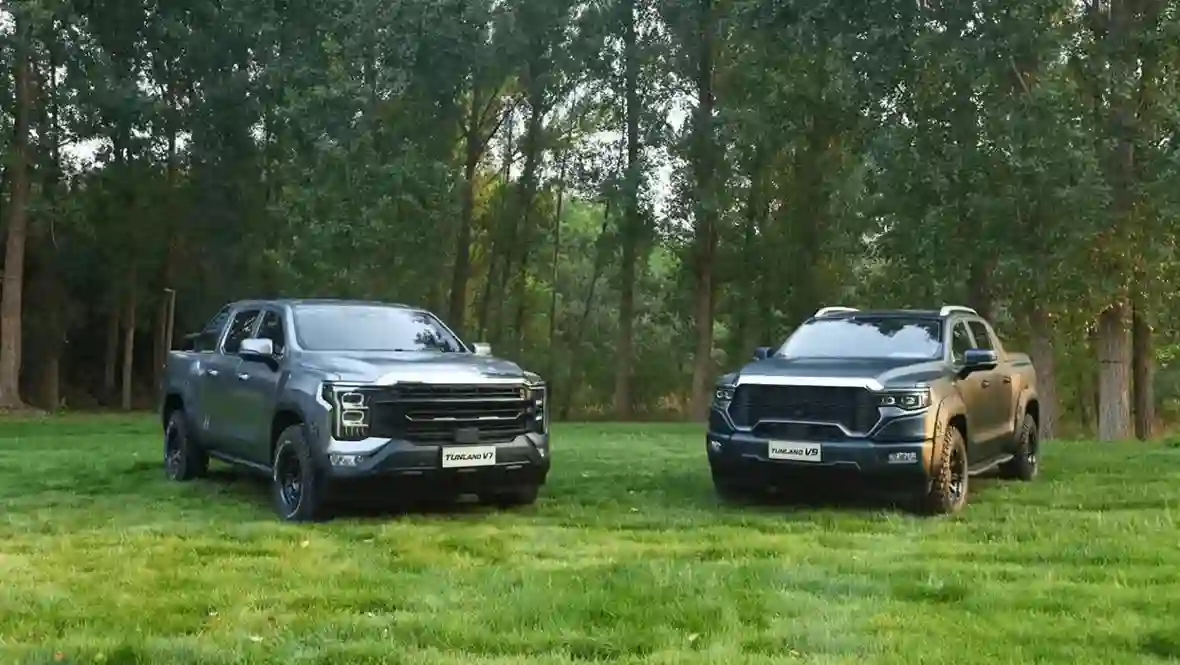 C такими данными можно уже попробовать бросить вызов большим американским пикапам. Что FOTON TUNLAND V и делает. Обратите внимание на его внешность: вертикальные бойницы фар и характерная решетка радиатора версии V7 напоминают Ford F-серии, а узнаваемая физиономия V9 указывает на другую заокеанскую легенду — Dodge Ram.