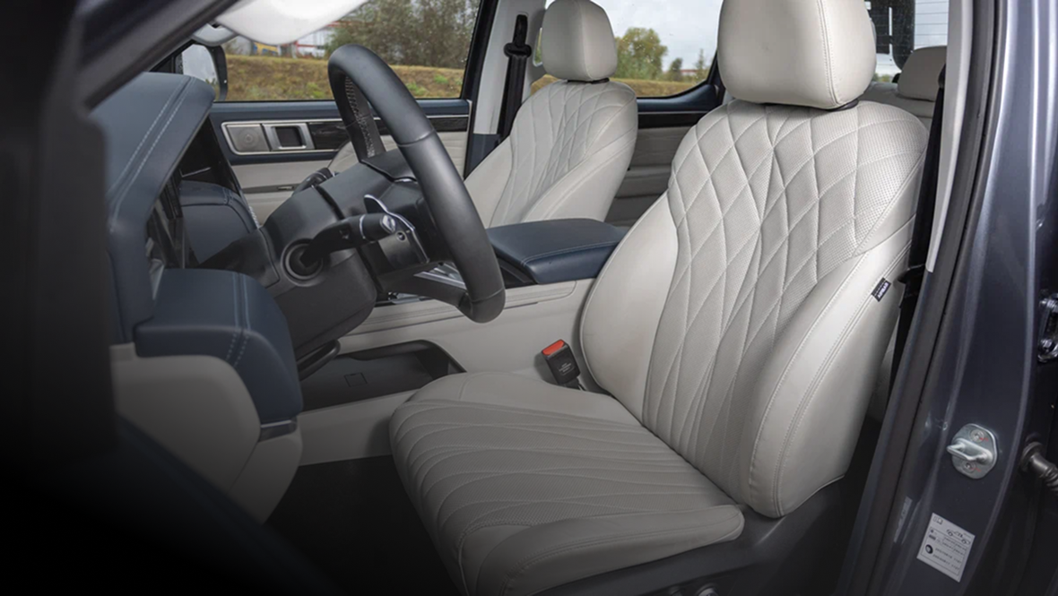 FOTON TUNLAND V7 — не самый крупный и вместительный пикап на рынке, но точно самый дорогой из официально продающихся (не считая старшей разновидности V9 с ещё более значительным ценником). Но за немалые деньги модель предлагает то, чего нет у других: гибридный «довесок» и роскошный по меркам класса интерьер.