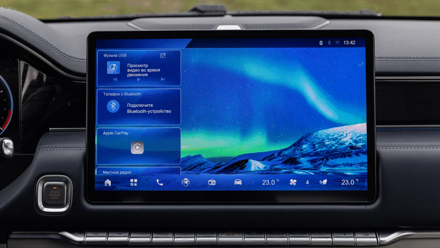 Отдельный зачёт — за полностью механический блок климат-контроля и удобные шайбы, отвечающие за ездовые режимы и работу полноприводной трансмиссии. Минус — за урезанный зимний пакет: в TUNLAND V7 есть только подогрев передних сидений и ветрового стекла.