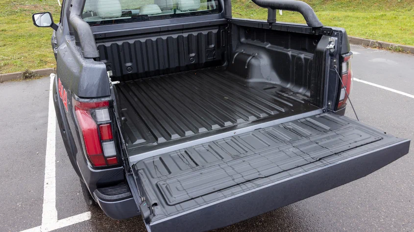 Тем не менее TUNLAND V7 — очень крупный автомобиль. При размерах кузова 1650×1577×530 мм европаллета встаёт поперёк с небольшим запасом по длине. Здесь есть четыре такелажные скобы и защита площадки от царапин полимерным материалом. Но снаружи поклажу не зафиксировать (как, например, на Great Wall Poer King Kong), да и вообще практичных опций маловато.