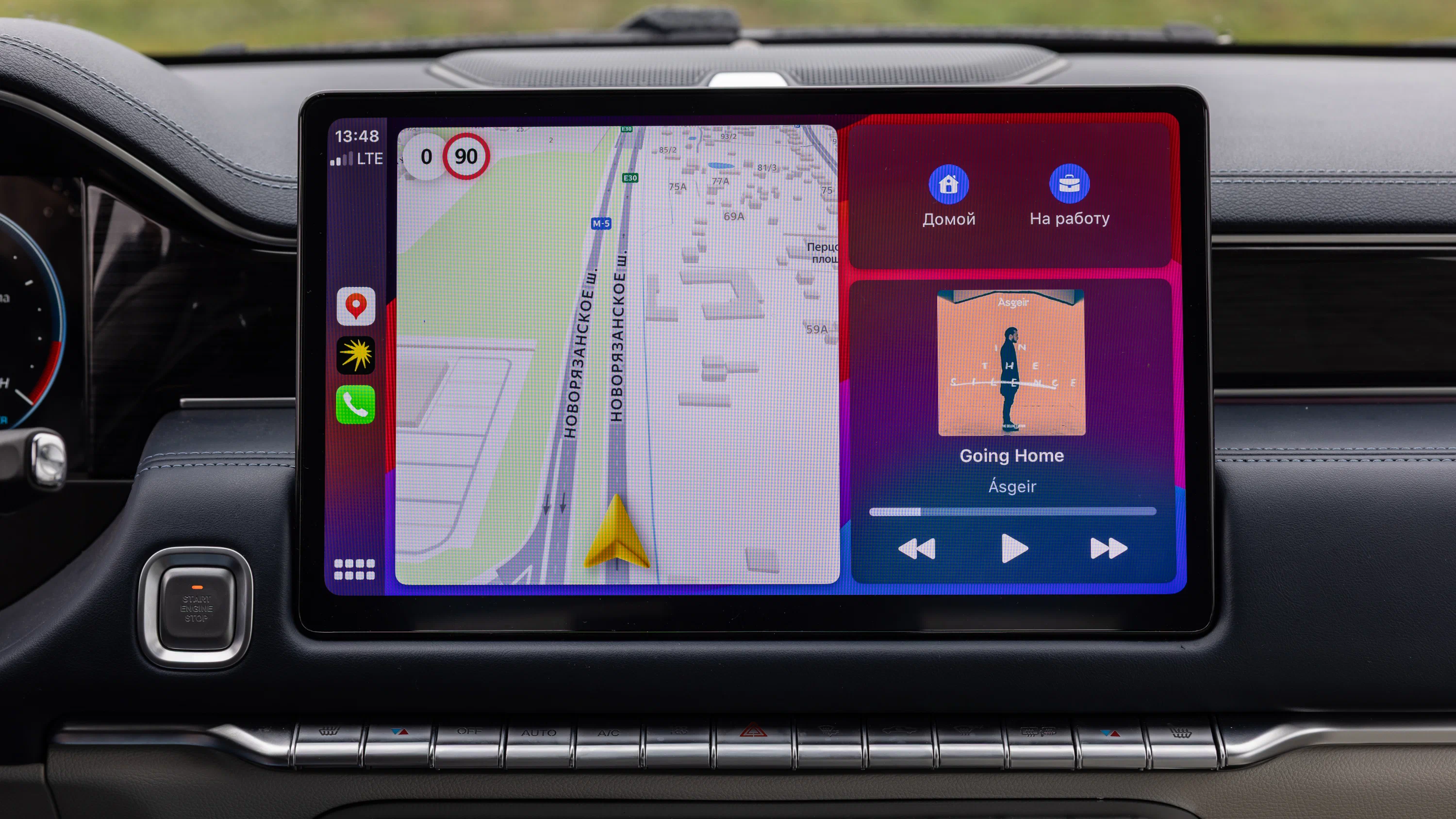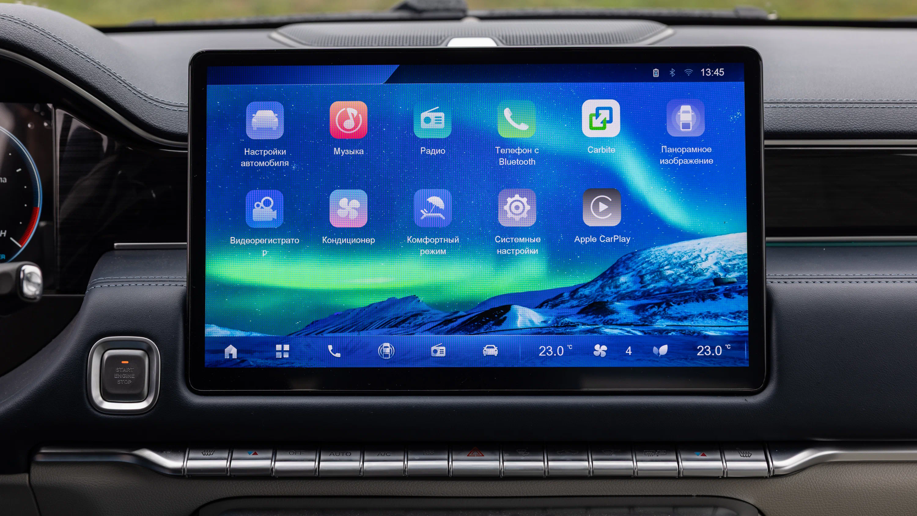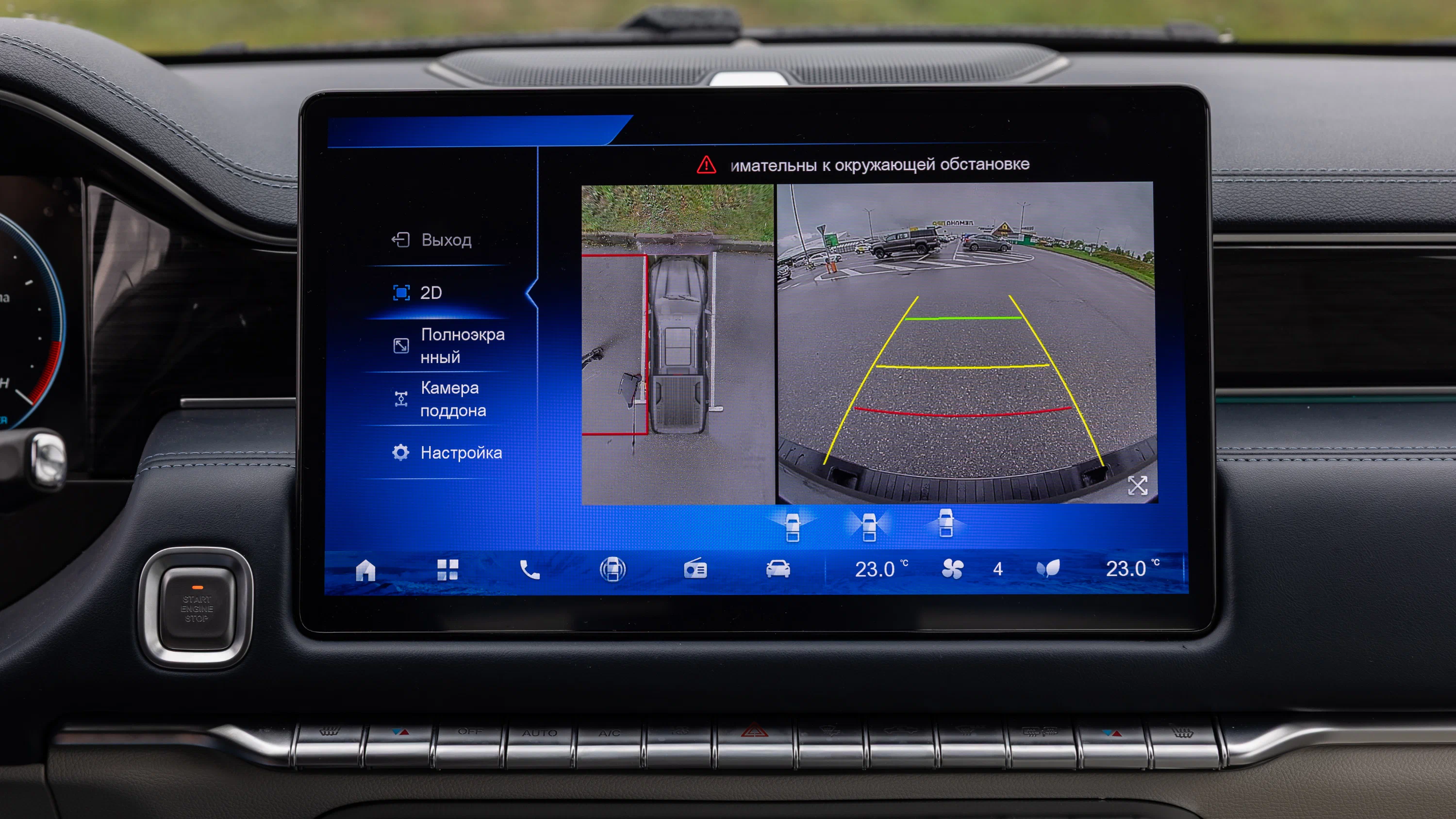 Мультимедийный комплекс с 14,6-дюймовым экраном старается ни к кому отсылок не делать. Меню построено понятно, и настроек достаточно, но русификация местами хромает, а контрастный тачскрин не всегда с первого раза отзывается на нажатия.
