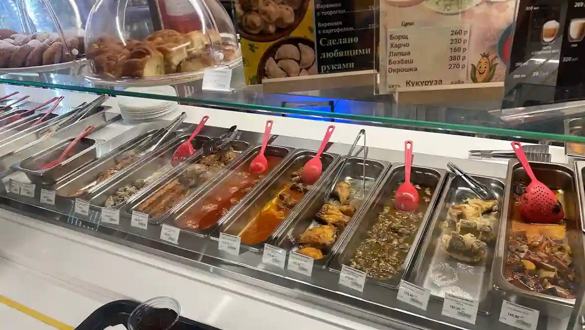 Зашли в местный супермаркет — и, честно говоря, были поражены. Ассортимент и оформление — на уровне премиальных магазинов Москвы. А вот цены — ниже, чем в «Пятёрочке» или «Магните».