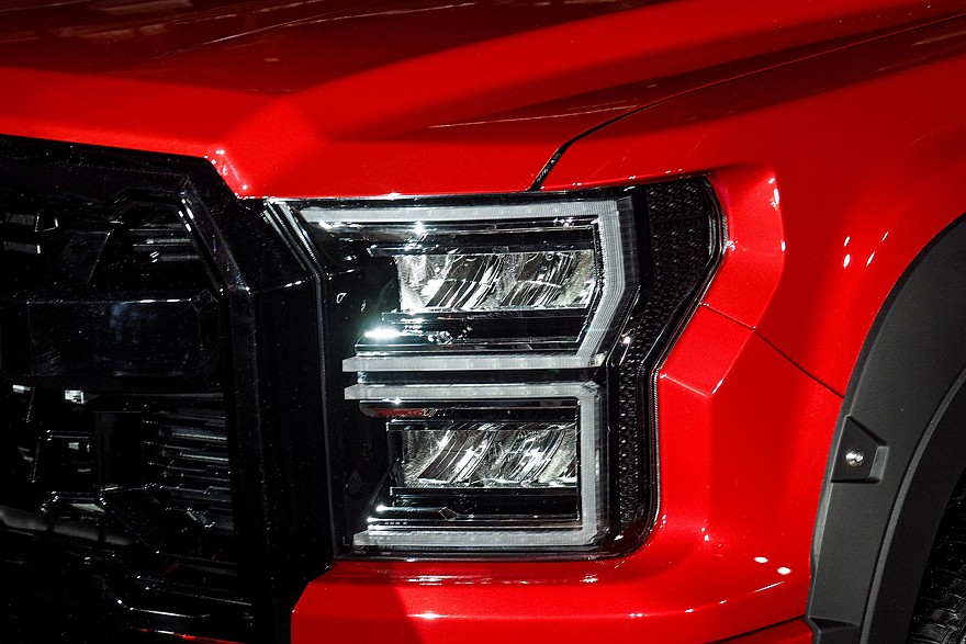 Сильней всего изменилось оформление передней части. Теперь она выполнена в стилистическом сходстве с TUNLAND V7, создатели которого в свою очередь явно посматривали на Ford F-150. Прямоугольные двухэтажные фары имеют несколько иную форму, но по-прежнему окаймлены полосками дневных ходовых огней. Крупная черная облицовка радиатора несет не менее крупный логотип FOTON, и тут сходство с G7 уже очевидно. Разве что буквы не хромированные, а красные с черной каймой. На боковые поверхности крыльев вернулись небольшие «псевдожабры» с надписью FOTON G. Передние и задние колесные арки получили накладки из неокрашенного черного AБC-пластика, закрепленные болтами с хромированными головками. Передний бампер явно выглядит куда более защищенным от внешних воздействий, нежели полностью окрашенный бампер G7. А вот ситуация с задним бампером диаметрально противоположная: у TUNLAND G7 он был неокрашенным, а у G9 он одного цвета с кузовом. Изменилось и оформление заднего борта – с него исчезла черная пластиковая накладка с логотипом. Сама же грузовая площадка серьезных изменений не претерпела: те же внутренние габариты 1520×1580×440 мм, такие же массивные крюки для фиксации грузов на внешней стороне бортов и штатное пластиковое покрытие внутри. И практически такая же дуга безопасности, зрительно делающая силуэт автомобиля похожим на седан.