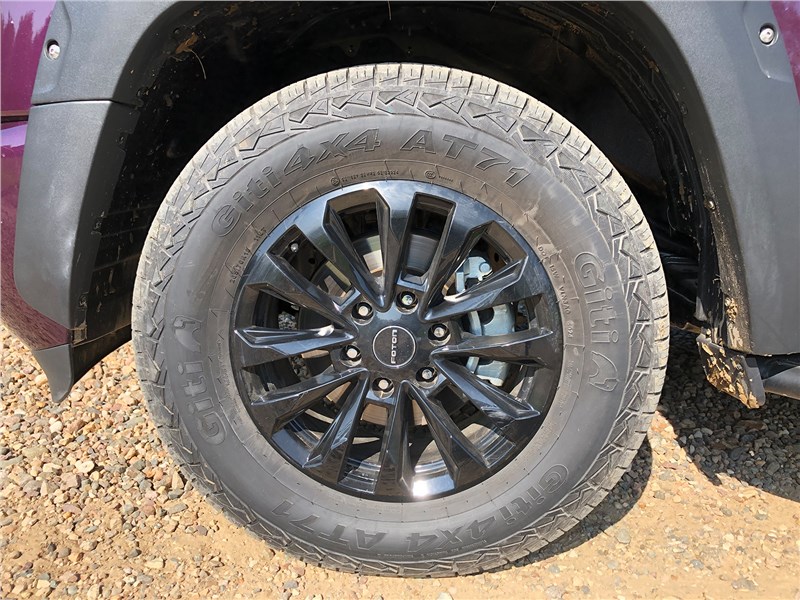 Вроде грузовик, но при этом Twin Cab, кабина с двумя полноценными рядами сидений, так что этот грузовик – с пятиместным салоном, как у обычного легкового автомобиля. Только размеры необычны: длина 5617 мм, ширина 2090 мм, высота 1910 мм, колесная база 3355 мм. Кузов с мощными дугами безопасности в грузовом отсеке смонтирован на раме. Нижняя часть переднего бампера и колесные арки «облиты» черным пластиком, крепеж – никелированные болты под торцевой шестигранник. Те же высокопрофильные шины All-Terrain, что были у V7, тот же короткий передний свес – а вот дорожный просвет у TUNLAND V9 на 30 мм больше, он составляет 240 мм.