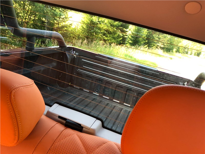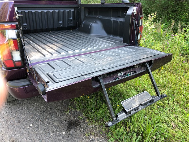 Задний борт грузовой платформы TUNLAND V9 опускается мягко, на гидравлических стойках, и снабжен выдвижной подножкой-стремянкой, – в V7 такой нет, еще один плюс V9. В обработанном защитным покрытием кузове можно везти до 725 кг груза. Обычное слабое место пикапов – малое расстояние между выступами колесных ниш, но в TUNLAND V9 это 1240 мм, вполне достаточно, чтобы погрузить садовый трактор, например, если кому-то понадобится использовать роскошный пикап для такой нехарактерной цели. Еще TUNLAND V9 с завода оснащен «квадратом» под тягово-сцепное устройство и розеткой 7 Pin. У нас в стране этому пикапу разрешено тянуть за собой прицеп без тормозов максимальной массой 725 кг, но в представительстве говорят, что сейчас работают над сертификацией, позволяющей увеличить массу прицепа – возможности машины позволяют буксировать не сотни килограммов, а тонны.