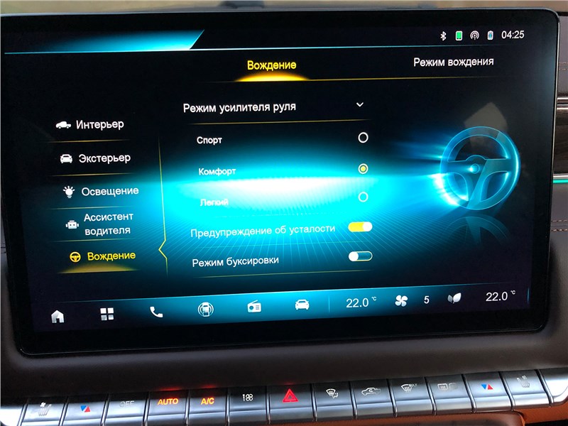 Разница в устройстве рулевого управления тут же дает себя знать на ходу: в флагманском FOTON обратная связь от руля в поворотах менее линейная, понятная и предсказуема, он больше сопротивляется и рвётся из рук. Еще у руля во флагманском FOTON излишне четкая околонулевая зона, и руль в ней как-то «закусывает», причем вне зависимости от выбранной настройки – а усилие на руле в V9 регулируется.