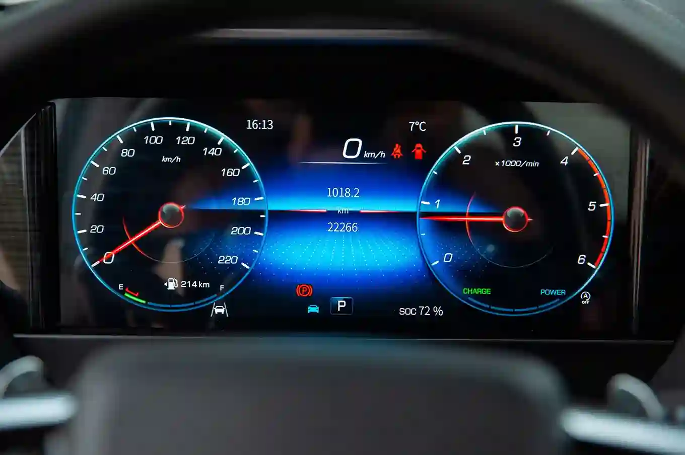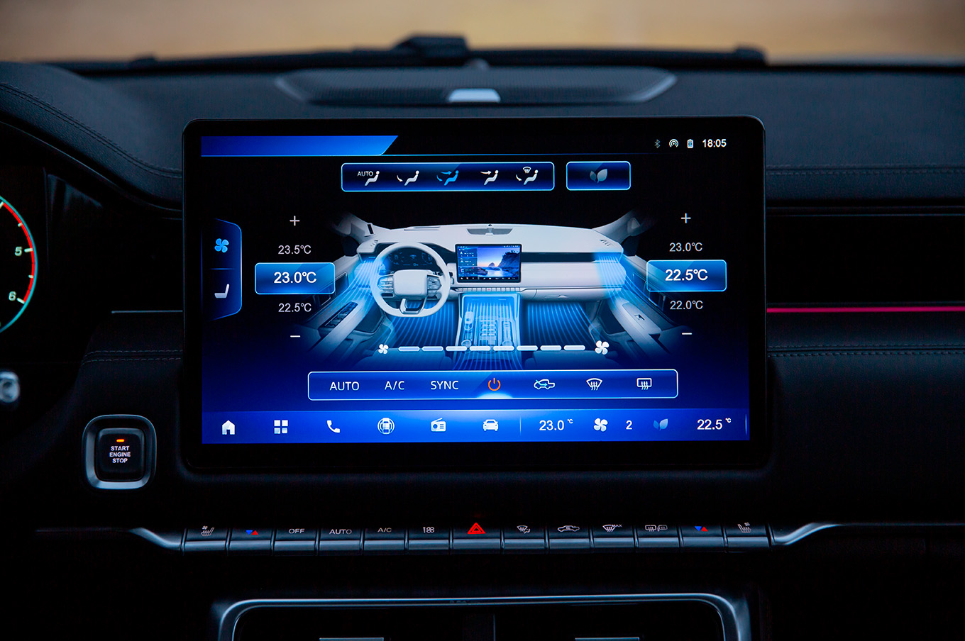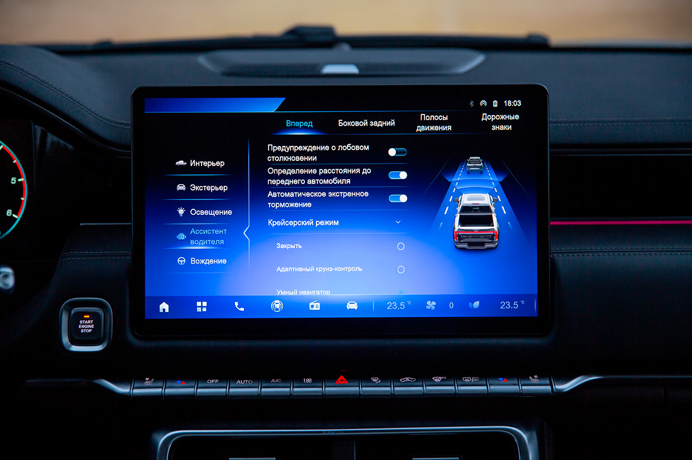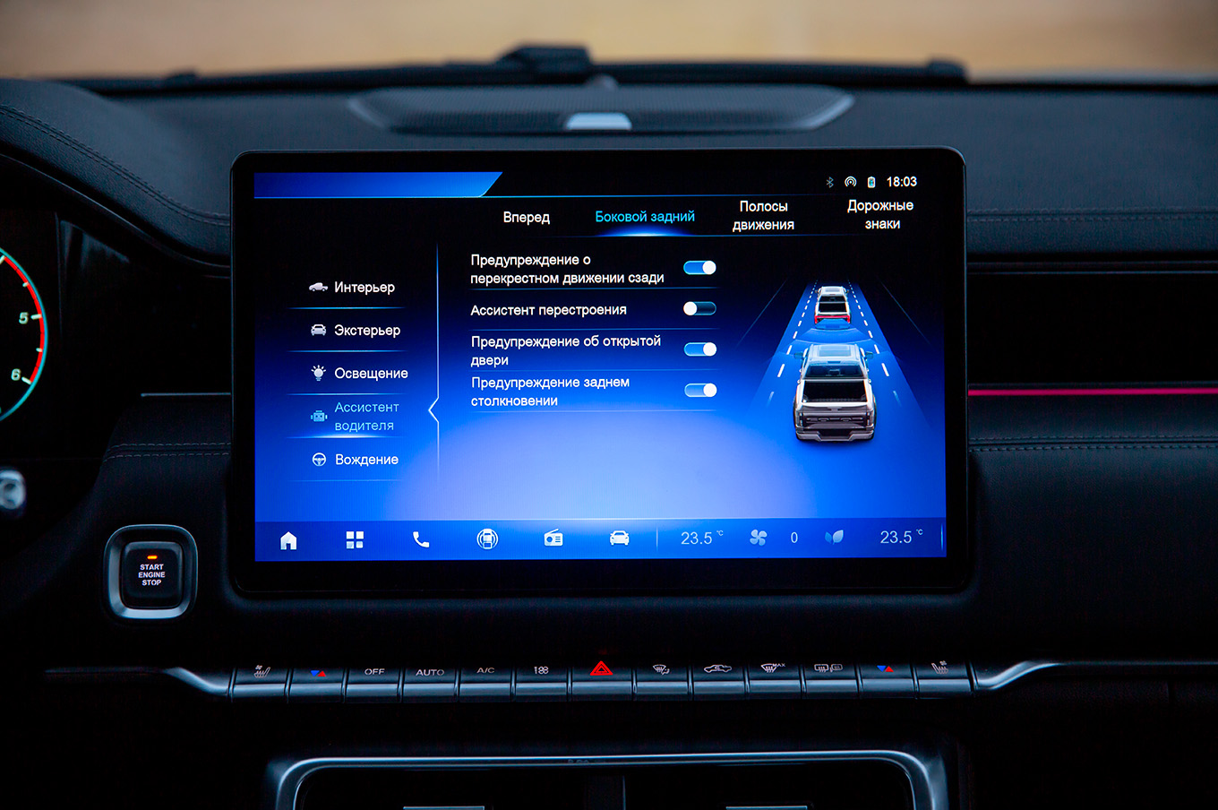 Дизайн приборки подозрительно напоминает Mercedes-Benz (даже раздел с работой трансмиссии тут называется 4Matic), но обе шкалы и центральную секцию можно настраивать на свой вкус — на удивление функциональный и удобный интерфейс.