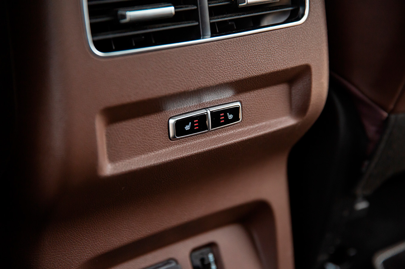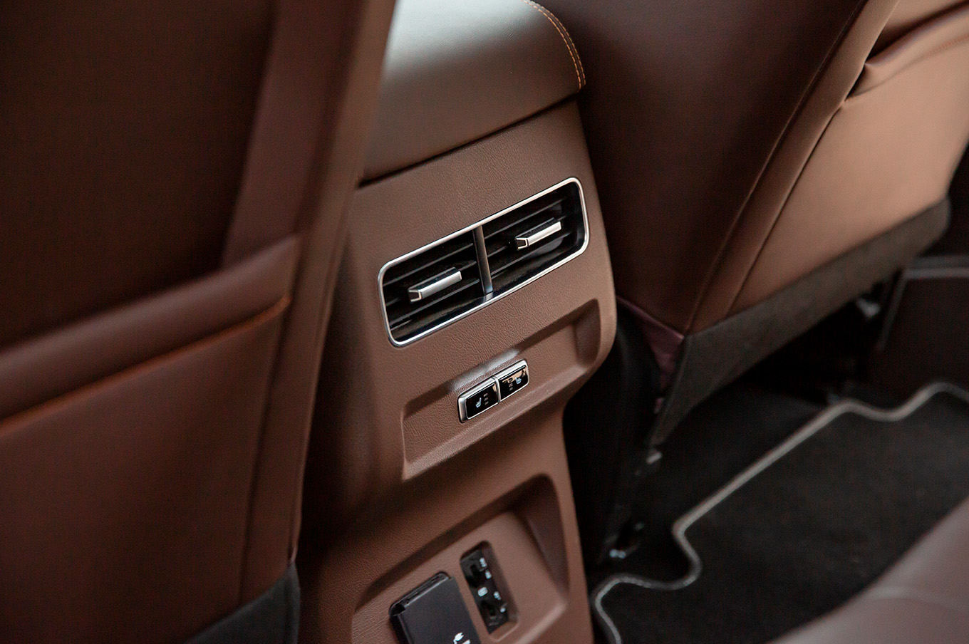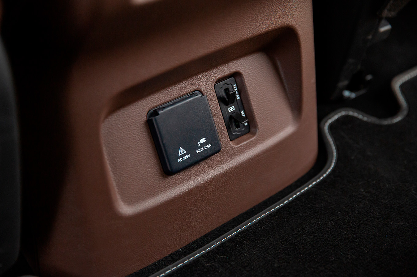 Сзади, как и спереди, есть подогрев сидений и USB-разъемы, но по-настоящему приятный бонус — розетка на 220 В.