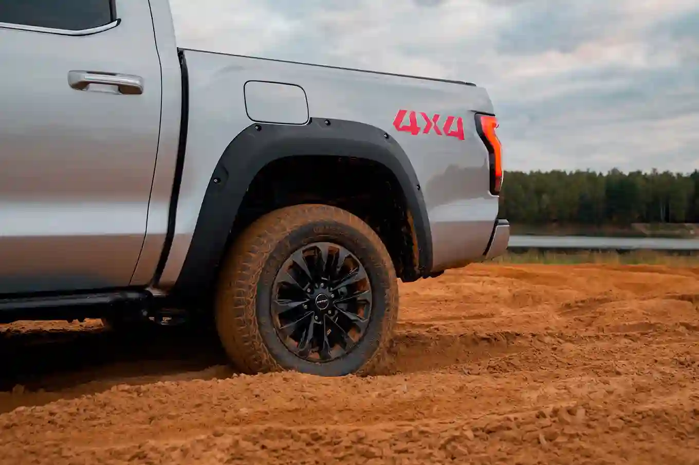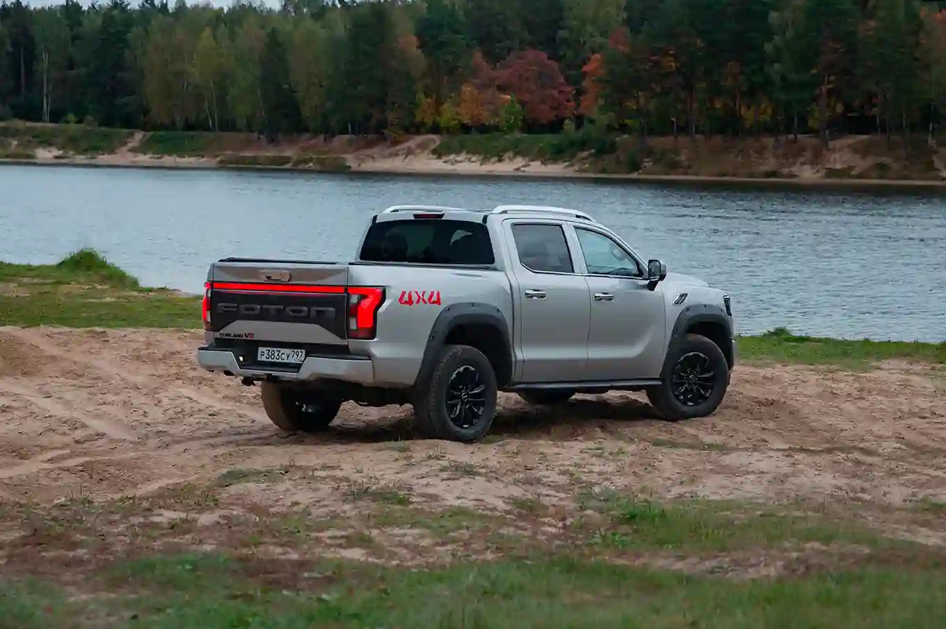 На фирменных рендерах компания FOTON показывает серебристый TUNLAND V9 в пустыне с песком, летящим из-под колес — кажется, нам удалось воссоздать эту картину в жизни.